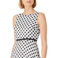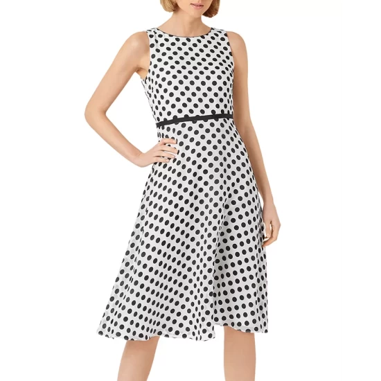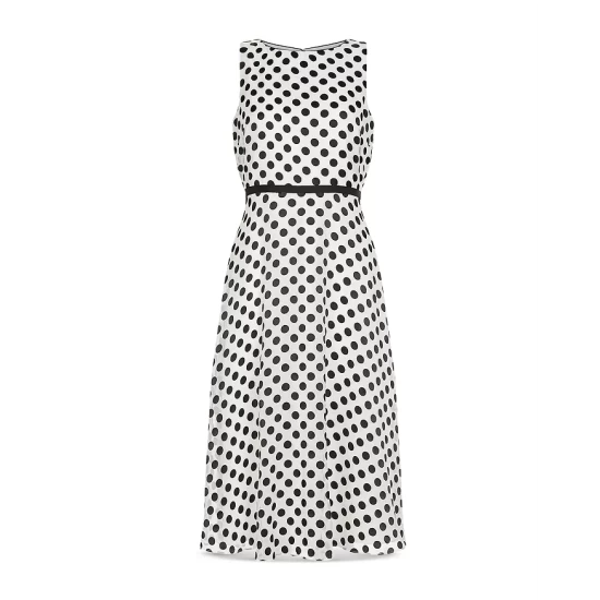 - Waist defining contrasting waistband, small cutout at nape of neck
