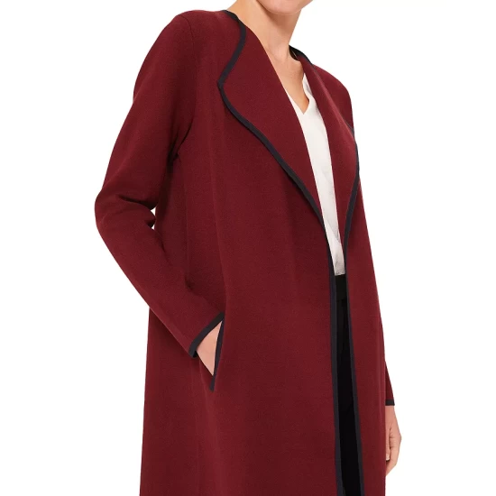 - Contrast trim at collar, opening, cuffs and pockets