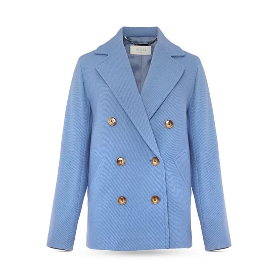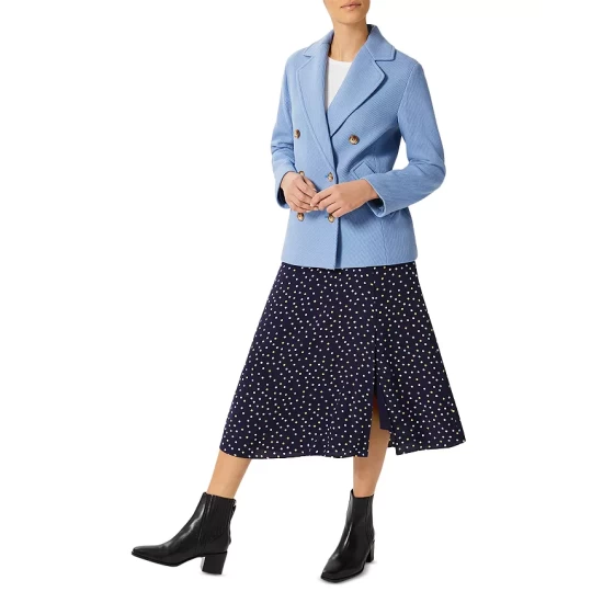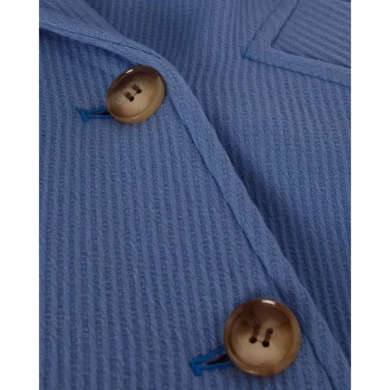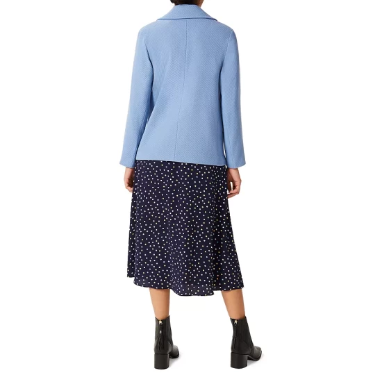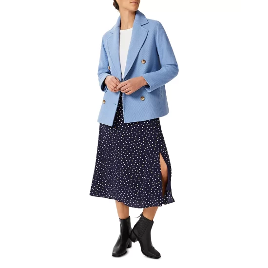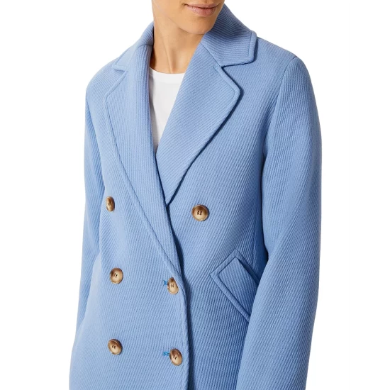 - Front double-breasted button closures