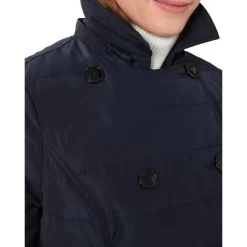 - Double-breasted button front closures