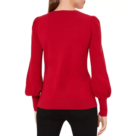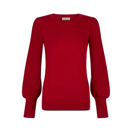 - Long blouson sleeves with long cuffs