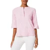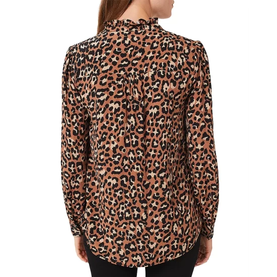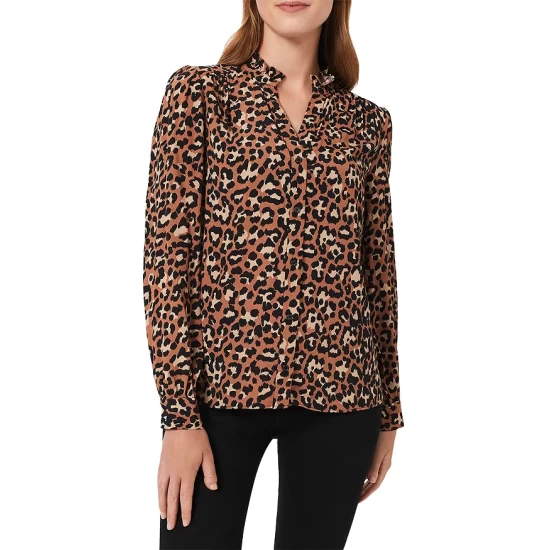 - Long sleeves, gathered shoulders, buttoned cuffs